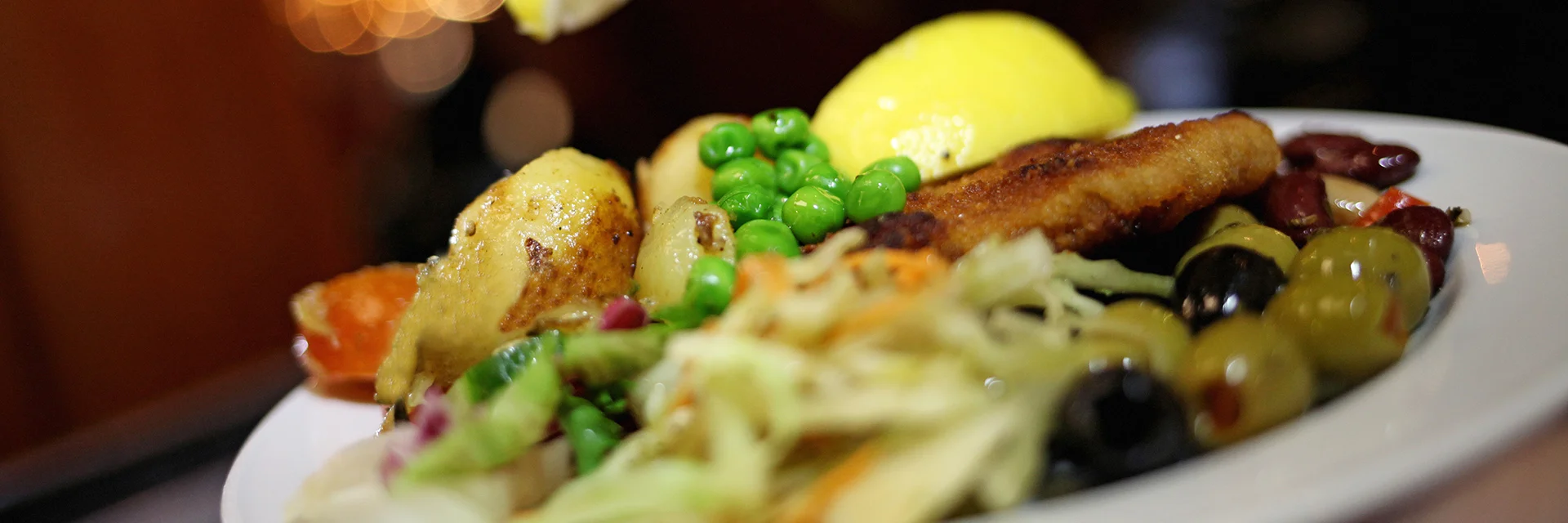 Varje vardag serverar vi vår populära lunchbuffé, där ni alltid kan välja mellan två alternativ av kött, fågel eller fisk samt ett vegetariskt alternativ. Buffén är generös, med ett stort salladsbord, goda varmrätter och ett fint avslut med kökets hembakade smulpaj och en kopp kaffe.